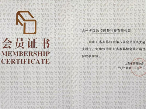 濱州虎森數(shù)控設(shè)備科技有限公司榮膺山東省家具協(xié)會理事單位,共譜行業(yè)新篇